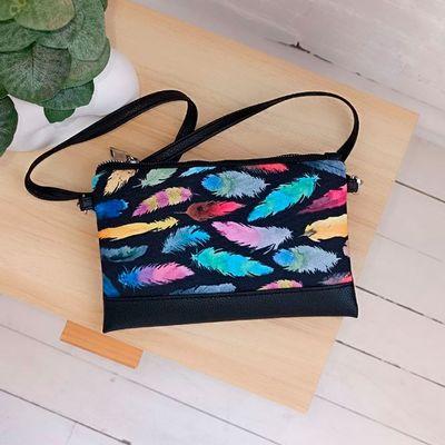 Клатч через плече Кольорове пір'я на чорному фоні